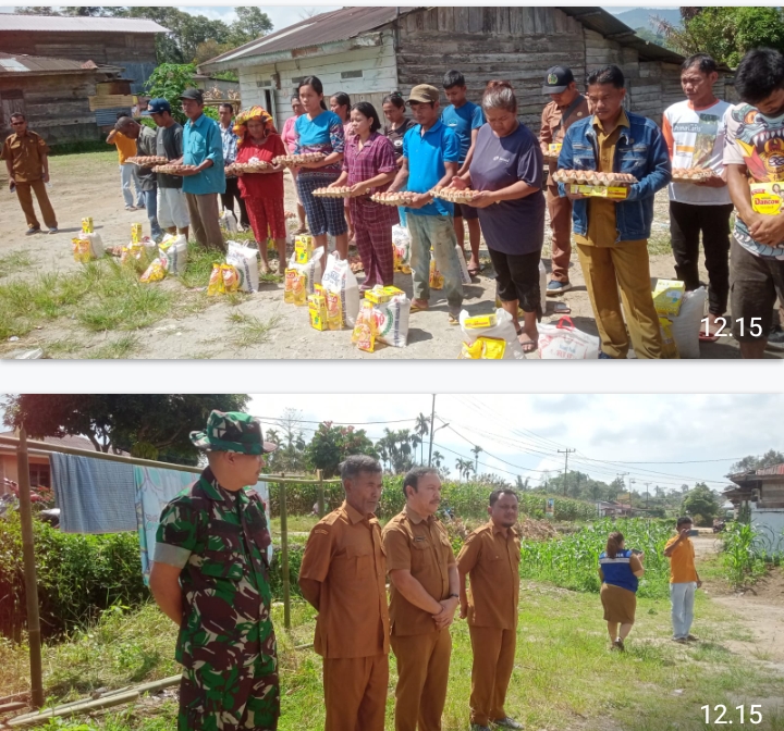 Bergerak cepat tanggap, Babinsa Koramil 02/Sidikalang Kodim 0206/Dairi bersama pemerintah Kecamatan Berampu dan Dinas Sosial Kabupaten Dairi turun tangan membantu para korban bencana alam angin puting beliung di Desa Berampu. Bantuan berupa sembako diserahkan langsung kepada 19 kepala keluarga (KK) yang terdampak bencana pada hari Selasa, (11/6/2024).