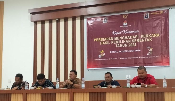 Komisi Pemilihan Umum (KPU) Kota Binjai mengadakan rapat koordinasi (rakor) bersama Panitia Pemilihan Kecamatan (PPK) dan Panitia Pemungutan Suara (PPS) se-Kota Binjai dalam rangka menghadapi gugatan dari Paslon 03, yakni dr. Donald/Andre Alfisah untuk pasangan Walikota dan Paslon 02, Edy Ramayadi/Hasan Basri untuk pasangan Gubernur. Kegiatan ini dilaksanakan di Astro Ovani, Jalan H. Agus Salim, Kelurahan Nangka, Kecamatan Binjai Utara, Kamis (27/12/2024).