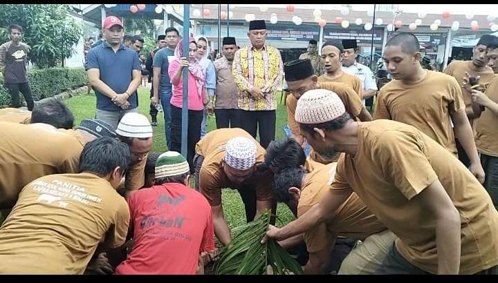 Lembaga Pemasyarakatan (Lapas) Kelas II A Binjai menggelar pemotongan hewan qurban dalam rangka merayakan Idul Adha 1445 H di lapangan Lapas Binjai pada Senin (17/6/24). Kegiatan ini diawali dengan sholat Idul Adha yang dilaksanakan oleh warga binaan di masjid Lapas sejak pagi hari, diiringi kumandang takbir yang menggema.