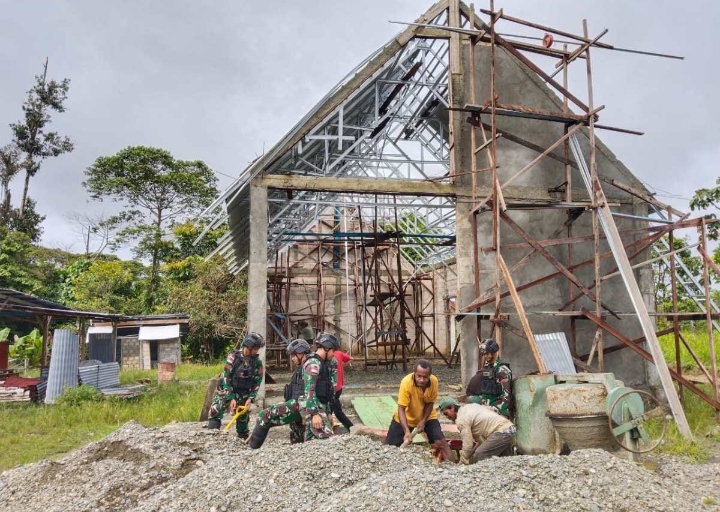Ditambahkan, pembangunan Gereja ini dipimpin langsung oleh Perwira Topografi (Patop) Satgas Yonif 310/KK Letda Ctp Dwi Iswahyudi dibantu personil Satgas dan warga sekitar yang berada di Kampung Woslay.