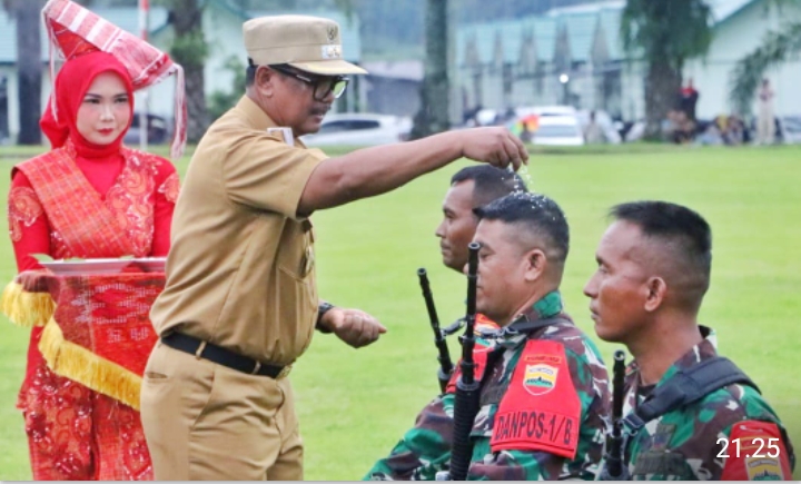 Kembalinya Satgas Pamtas ke-kesatuannya disambut dengan upacara yang dipimpin oleh Pelaksana Tugas (Plt) Bupati  Simalungun H Zonny Waldi, di Lapangan 1 Yonif 122/TS, Kecamatan Siantar, Simalungun, Sumut, Jum’at (18/10/2024).