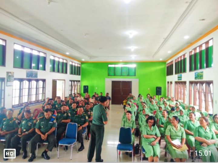 Prajurit, Pegawai Negeri Sipil (PNS), dan anggota Persit Kartika Chandra Kirana (KCK) Kodim 0206/Dairi mengikuti kegiatan Pembinaan Mental di Aula Makodim 0206/Dairi, Jalan Sisigamagaraja, Sidikalang, Selasa (4/5/2024). Kegiatan ini bertujuan untuk meningkatkan mentalitas dan kedisiplinan prajurit, PNS, dan Persit dalam mendukung tugas pokok satuan.