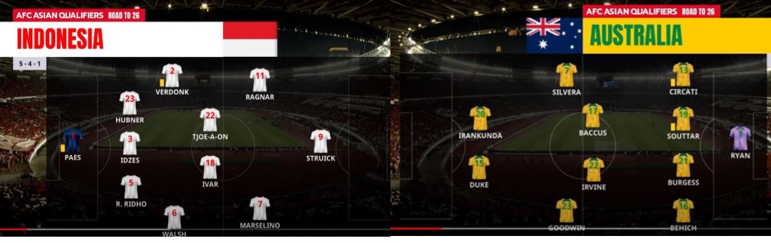 Dengan hasil ini, Timnas Indonesia meraih dua hasil seri dari dua pertandingan Kualifikasi Piala Dunia 2026 yang telah dijalani. Berikut adalah susunan pemain kedua tim: