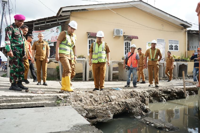 Didampingi oleh Plt Kepala Dinas Sumber Daya Air, Bina Marga dan Bina Konstruksi (SDABMBK) Kota Medan, Gibson Panjaitan, serta Camat Medan Belawan, Yoga Budi Pratama Irawan, Wali Kota melihat langsung progres pengerjaan drainase yang menggunakan komponen beton U-Ditch.