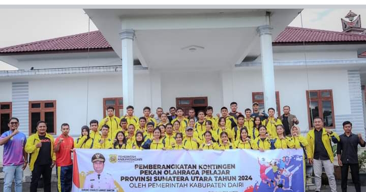 Pj Bupati Dairi, Surung Charles Lamhot Bantjin, secara resmi melepas 46 atlet Kabupaten Dairi yang akan berlaga di Pekan Olahraga Pelajar Provinsi Sumatera Utara (POPPROVSU) Tahun 2024. Acara pelepasan ini dilaksanakan di Rumah Dinas Bupati Dairi pada Minggu (30/6/2024). Para atlet ini berasal dari enam cabang olahraga, yaitu atletik, gulat, karate, taekwondo, dan wushu.