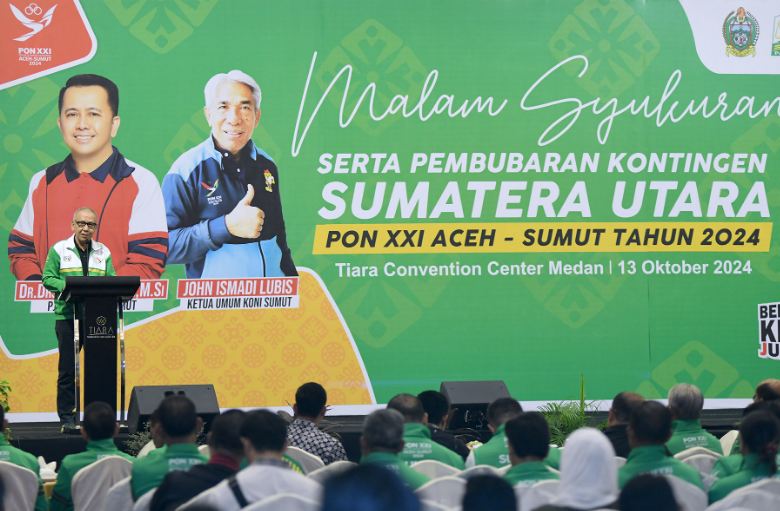 Penjabat Gubernur Sumatera Utara (Sumut), Agus Fatoni, memberikan apresiasi tinggi terhadap prestasi atlet-atlet Sumut yang berpartisipasi dalam Pekan Olahraga Nasional (PON) XXI Aceh-Sumut. Sumut berhasil meraih posisi keempat dengan total medali 79 emas, 59 perak, dan 116 perunggu, yang menandai kembalinya marwah provinsi ini dalam dunia olahraga.
