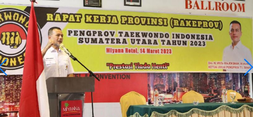 Taekwondo Indonesia Sumut akan kedatangan pelatih kyorugi dan poomsae dari Korea. Hal itu disampaikan Wakil Gubernur Sumut, Musa Rajekshah saat membuka Rapat Kerja Pengurus Provinsi Taekwondo Indonesia- Sumut di Hotel Miyana, Deliserdang, Selasa (14/3/2023).