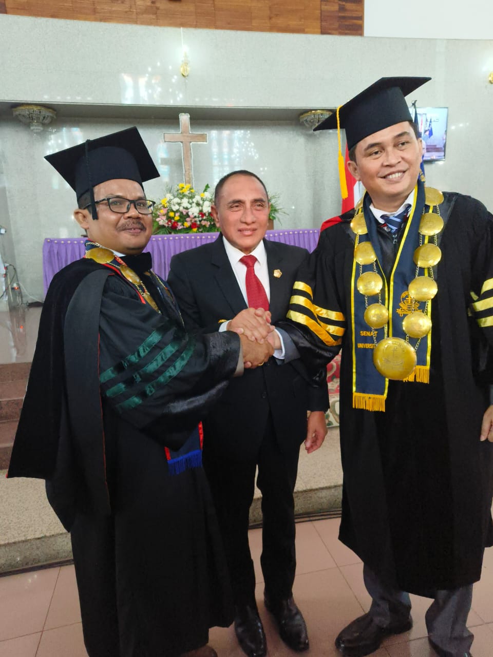 Sementara dalam sambutannya Gubernur Sumatera Utara Letjen TNI (Purn) Edy Rahmayadi mengapresiasi UHN Medan dan UHN Pematangsiantar sebagai salah satu PTS yang punya visi dan misi untuk membangun SDM bangsa ini yang berkarakter. Bahkan secara khusus Gubsu mengatakan demografi otak orang Batak diberikan karunia oleh Tuhan untuk jadi pintar dan itu sangat kita syukuri tambah Gubsu lagi. Gubsu di akhir kata sambutannya mengatakan selamat kepada Rektor terpilih dan selamat bekerja untuk membangun SDM negara ini dan semoga UHN Medan dan UHN Pematangsiantar bisa sukses ke depan, tegas Gubsu lagi.