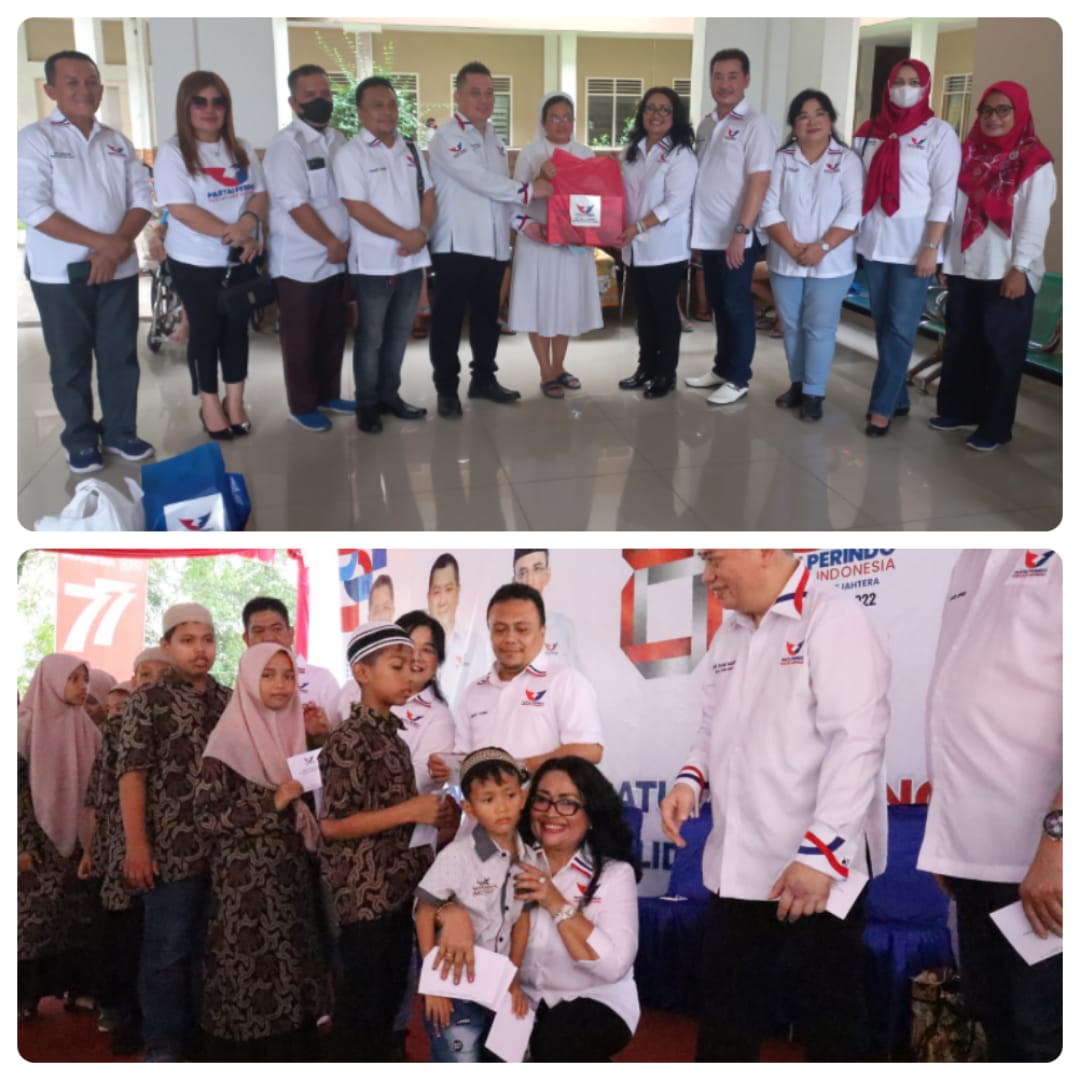 Dewan Pengurus Wilayah (DPW) Partai Perindo Sumatera Utara (Sumut) merayakan HUT Ke-8 Partai Perindo dengan berbagi di Panti Jompo Karya Kasih, di Jalan Mongonsidi, Kota Medan, Sabtu (8/10/2022).