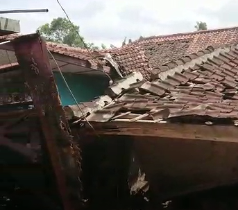 salah satu atap rumah warga Cianjur Jawa Barat rusak berat akibat gempa berkekuatan 5.6 skala ricter. (dok Rudi Hartono/galasibot.co.id)