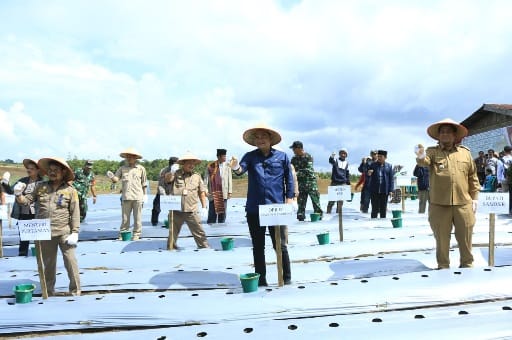 Menteri Pertanian Syahrul Yasin Limpo, melakukan penanaman perdana di Kawasan Pertanian Terpadu (KPT) Kabupaten Samosir, tepatnya di Desa Hariara Pintu, Kecamatan Harian, Rabu (28/2/2023).