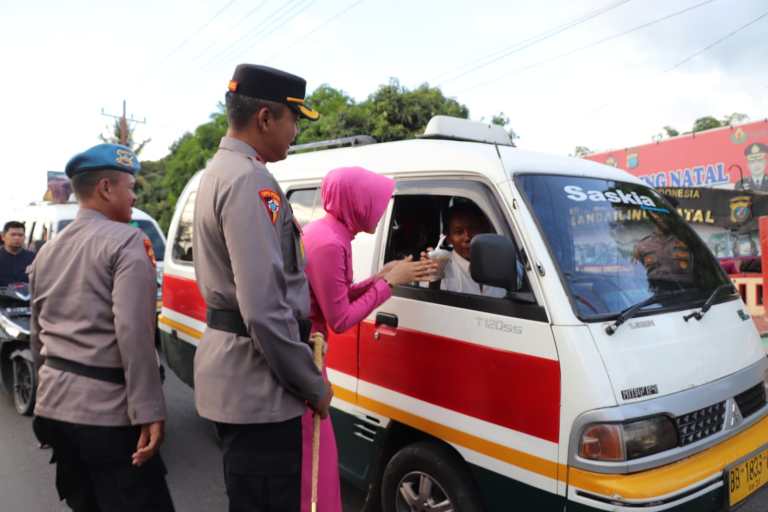 Kegiatan ini dilakukan Polres dan Bhayangkari dengan pembagian takjil gratis kepada pengemudi motor dan mobil. “Hari ini kita laksanakan untuk berbagi kasih, silaturahmi dengan masyarakat sekitar dan warga luar yang melintasi Kota Panyabungan,” Ungkap Kapolres Mandailing Natal
