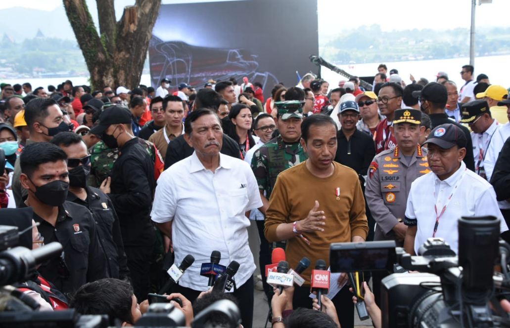 Presiden RI, Joko Widodo bersama Ibu Iriana Joko Widodo, saksikan perhelatan F1 Powerboat World Championship Danau Toba 2023 di Kota Balige, Kabupaten Toba, Sumatera Utara, Minggu (26/2/2023).