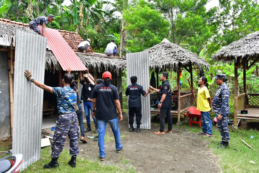 Komandan Pangkalan TNI AL (Lanal) Cilacap Kolonel Laut (PM) Sugeng Subagyo membenahi rumah salah satu Dalang muda yang bernama Ki Dalang Mongko Daryono sebagai salah satu bentuk kepedulian TNI Angkatan Laut terhadap seniman yang berasal dari Desa Dondong Kecamatan Kesugihan Kabupaten Cilacap, Selasa(7/3/2023).