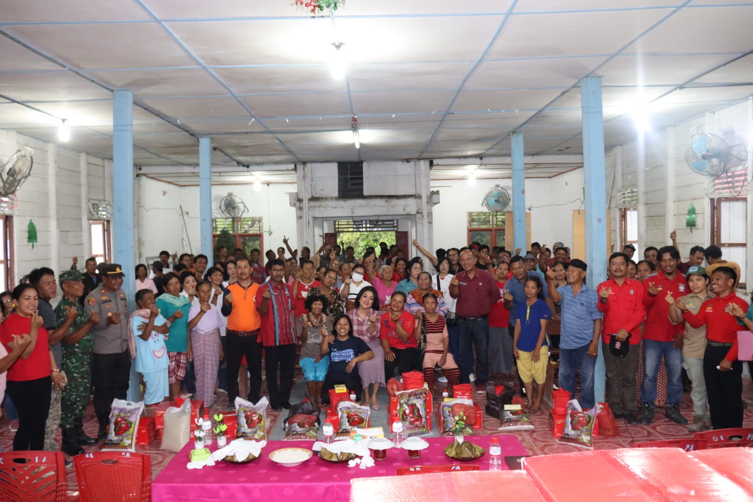 Satika Simamora bersama rombongan juga memberikan Boras si pir ni Tondi, Pisang Sitonggitonggi hingga air putih kepada perwakilan korban sebagai bentuk penghiburan bagi korban bencana puting beliung.
